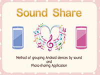 本研究では,接点の少ない人同士で一時的に形成されるグループ内で情報共有を行うために,音を利用したグルーピング手法を提案する.高周波数の矩形波を流し,それらを受信したAndroidデバイス間で共通のグループIDを生成し,同じグループIDを所有している物同士で情報共有を行う.また,本研究では,応用例として写真共有を目的としたアプリケーションを構築した. |