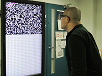 本報告では,システムが空間の状況を感知し,それを反映した多数の小さいモジュールに基づく表現によって人が思わずゾワゾワ,ビクッと感じてしまう情報環境CreepyWallを提案する.処理は画面上に多数配置したシンプルで小さいモジュールを単位として行ない,モジュール間の規則に基づいた連携によって全体として結果を生む表現を行なう.表現モジュールの大きさや反応の仕方,動き等をうまく調整することで,人が,自身の行動も関わって常に変化する状況を直感的,生理的に知覚できることをねらう.こうした仕組みを通じて,人の気配を感知,活用しながら雰囲気を作り出すことのできる「アンビエント・コンピューティング」の実現をめざす. |