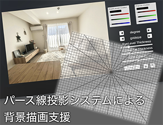 | パース線投影システムによる背景描画支援ツールの提案 | |
